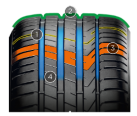 ПРЕИМУЩЕСТВА — Безопасный уровень аквапланирования без ущерба акустическому комфорту. - ОСОБЕННОСТИ — Новый состав резиновой смеси «FULL SILICA» в совокупности с четырьмя широкими продольными каналами
